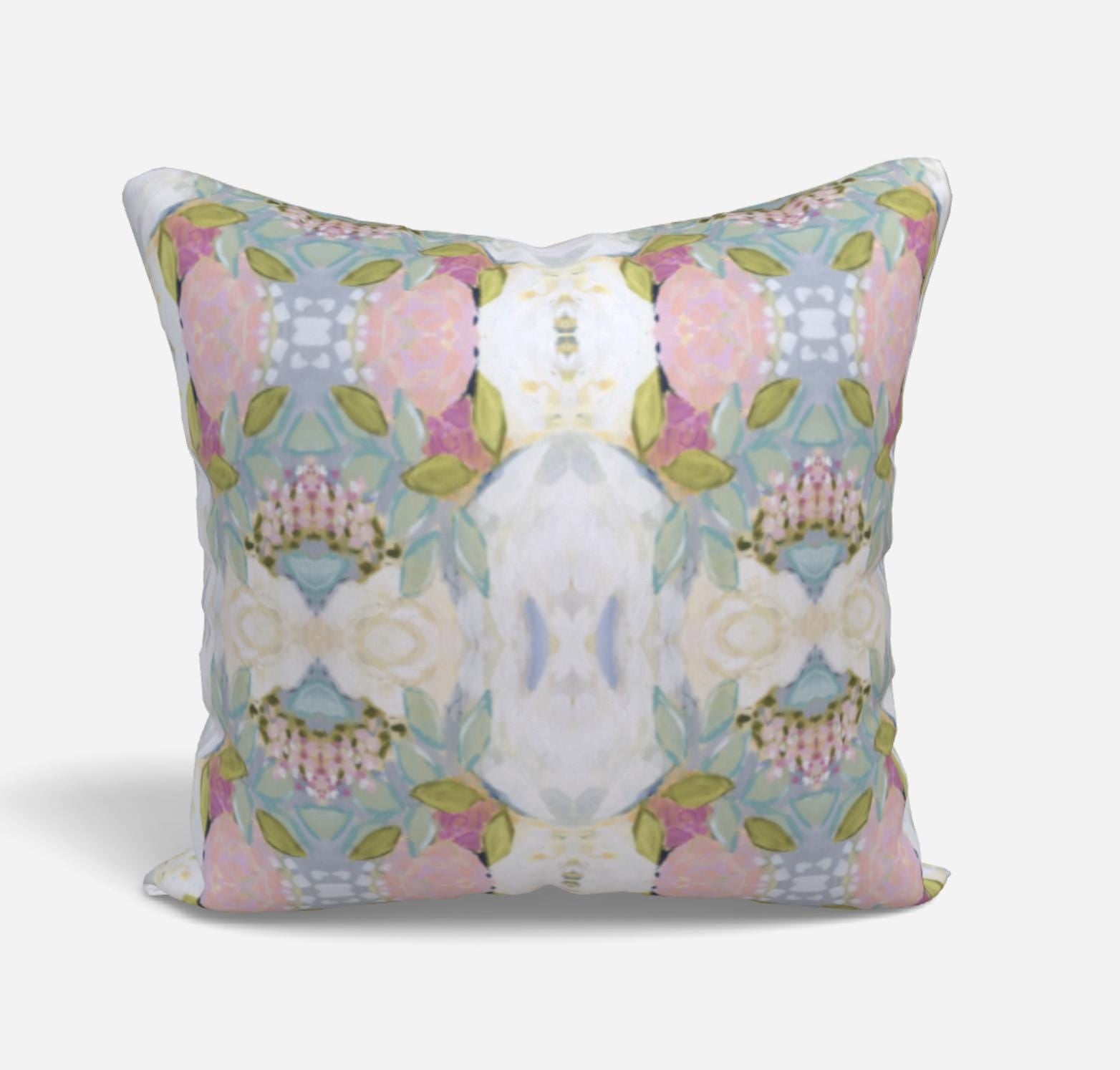 NEW Le Fleur Pink green blue pillow mist blue chartreuse accent pillow dorm pastel design greens pinks lumbar 18x18 22x22 12x24 14x20 soft