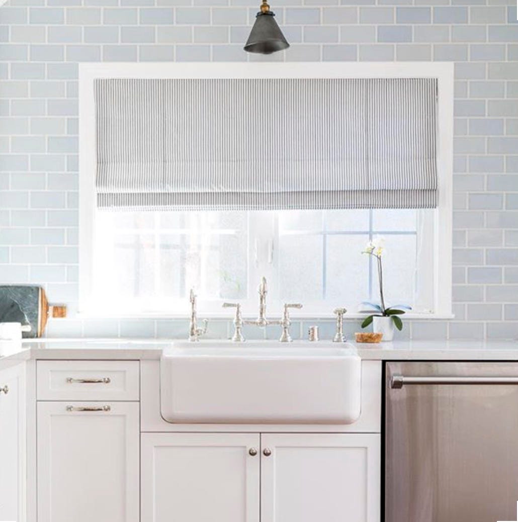 French Ticking Roman Shades CUSTOM size striped roman shades kitchen window shades grey stripe roman shade stripes ticking window shade blue