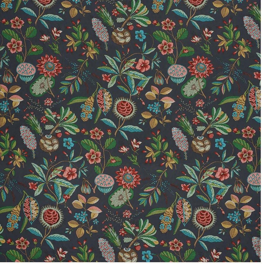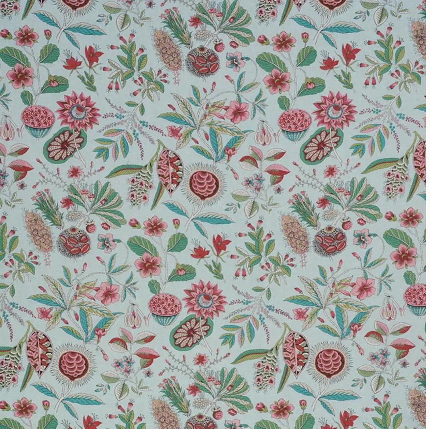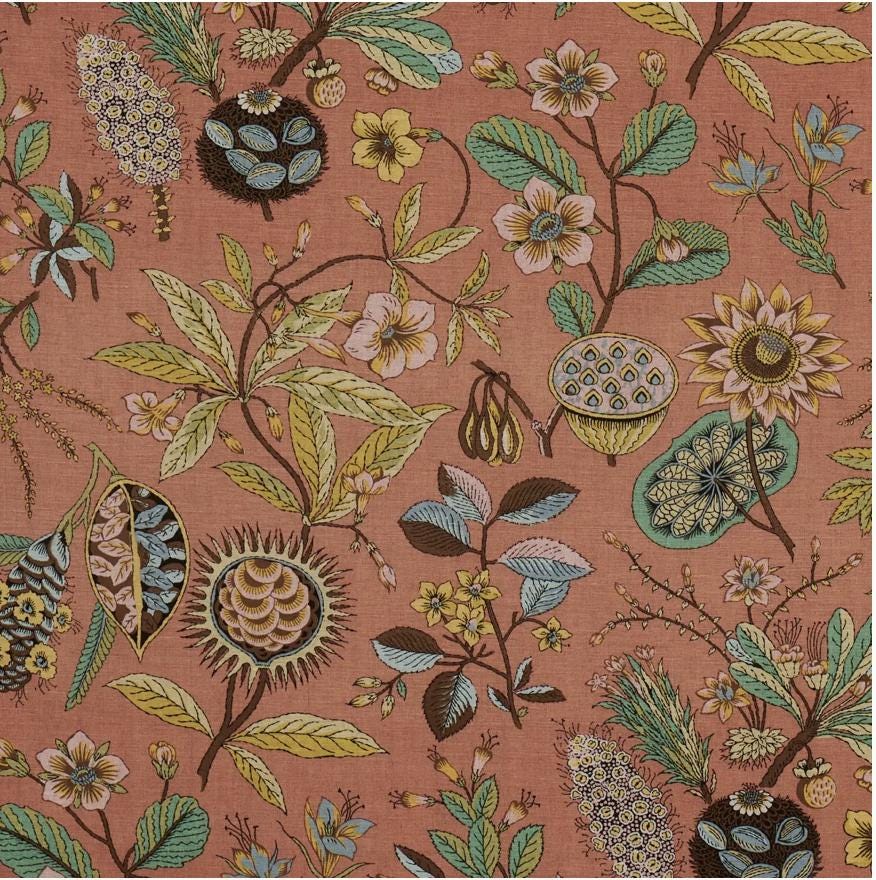 Functional roman shade in F Schumacher's Roca Redondo fabric. Based on an 18th-century French document, this fantastical rendering of flowers, branches, and seedpods combines a warm sensibility with a chic versatility that can skew traditional, modern, and everything in between.
